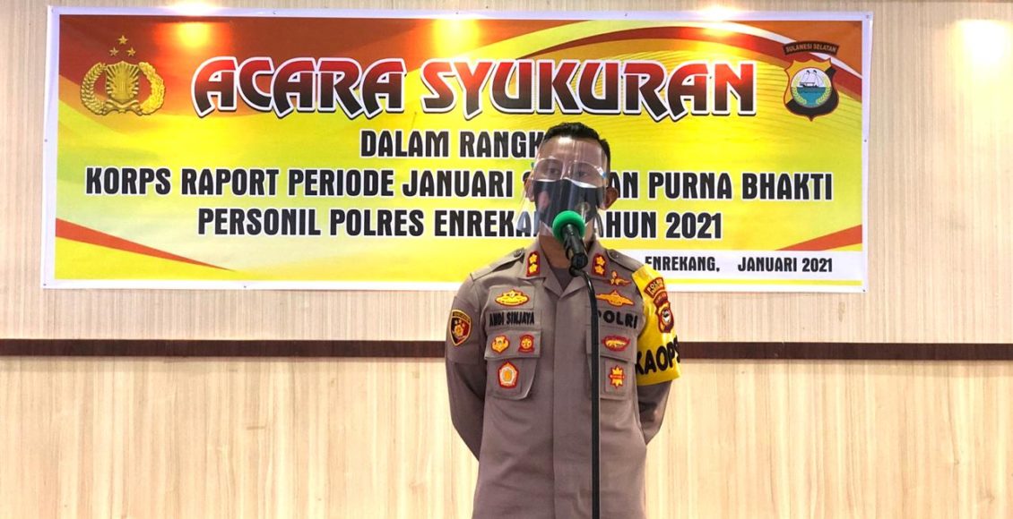Enrekang, IKAGAWANEWS.ID – Dalam rangka Korps Raport Periode Januari 2021 dan Purna Bhakti Personil Polres Enrekang tahun 2021. Polres Enrekang melaksanakan acara syukuran, pada hari Senin, (04 Januari 2021), sekira pukul 10.00 Wita.