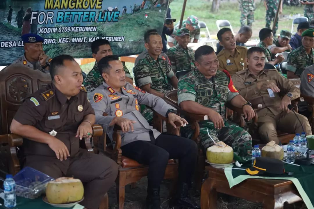 Penanaman mangrove secara simbolis dilakukan Dandim 0709 Kebumen Letkol Czi Ardianta Purwandhana, Kapolres Kebumen AKBP Burhanuddin, perwakilan dinas terkait, serta para Muspika Kecamatan Mirit.