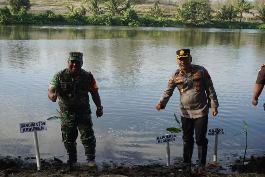 Dandim dan Kapolres Kebumen Tanam Mangrove di Pesisir Mirit