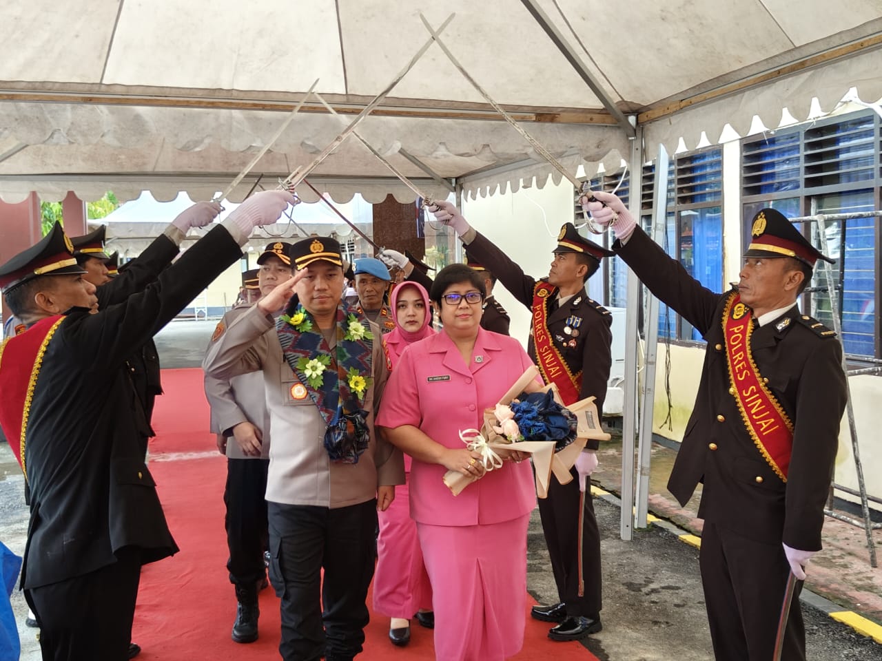 Penyambutan dipimpin langsung Akbp Fery Nur Abdulah, S.Ik dengan penyambutan tradisi Pedang pora dan penyambutan oleh Pejabat Utama Polres Sinjai dan seluruh personel Polres Sinjai.