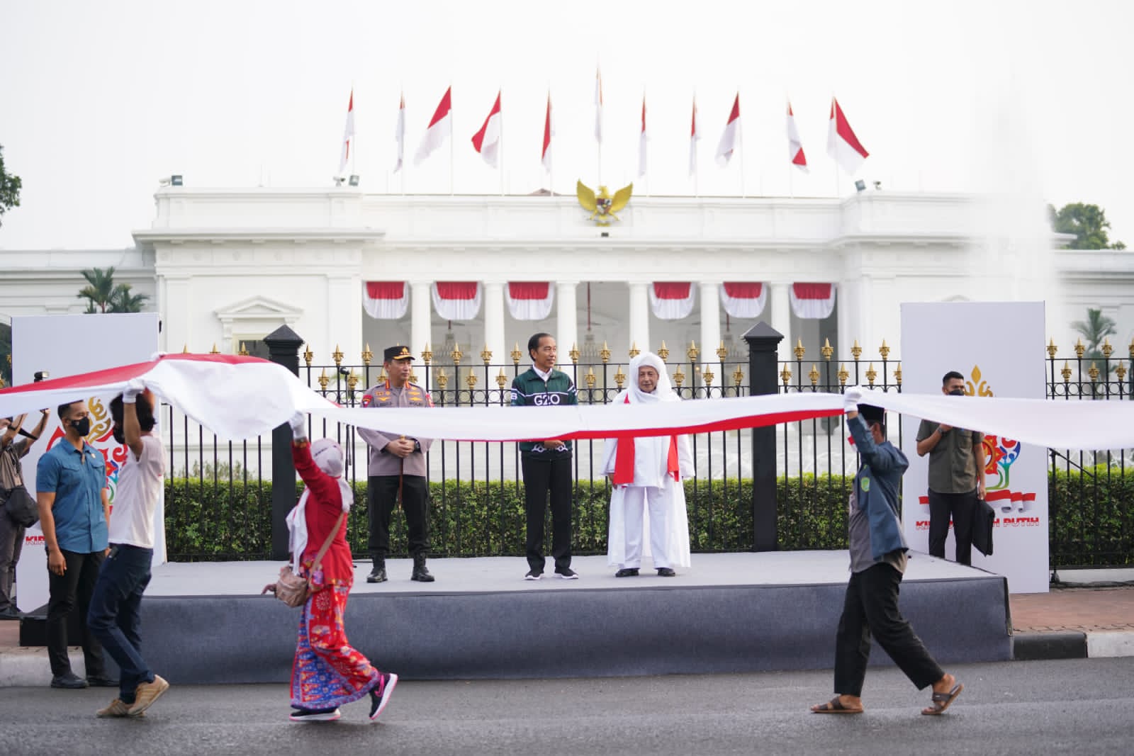 Kirab merah putih ini dilepas oleh Presiden Indonesia Joko Widodo (Jokowi) dari depan istana merdeka bersama Ulama karismatik Habib Luthfi bin Ali bin Yahya dan Kapolri Jenderal Listyo Sigit.(Red/Hum)
