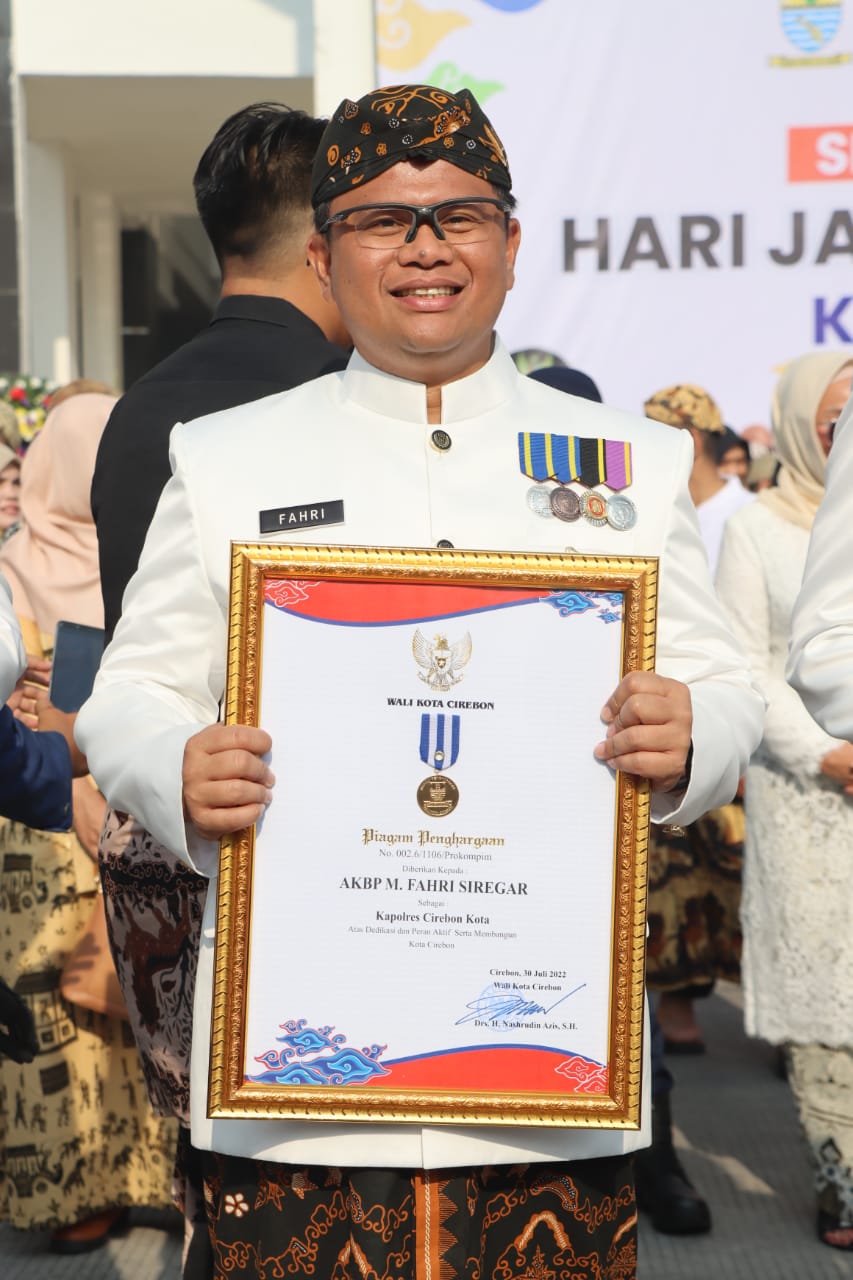 Cirebon Kota,ikagawanews.id  – Kapolres Cirebon Kota AKBP Dr. M. Fahri Siregar, SH.S.IK.MH mendapatkan penghargaan CIREBON AWARD dalam rangka Hari Jadi Cirebon ke 653 Tahun 2022 sebagai tokoh yang memiliki Dedikasi dan peran Aktif serta membangun Kota Cirebon.