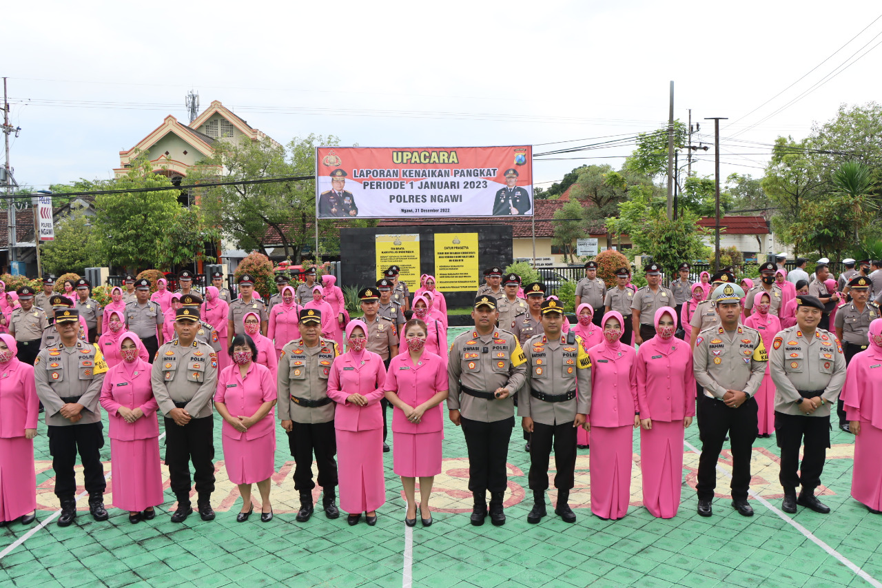 Tradisi korp raport kenaikan pangkat tersebut dipimpin oleh Kapolres Ngawi AKBP Dwiasi Wiyatputera, S.H., S I.K., M.H., yang dihadiri juga oleh para Pejabat Utama (PJU), Bhayangkari dan Kapolsek jajaran serta anggota Polres Ngawi.
