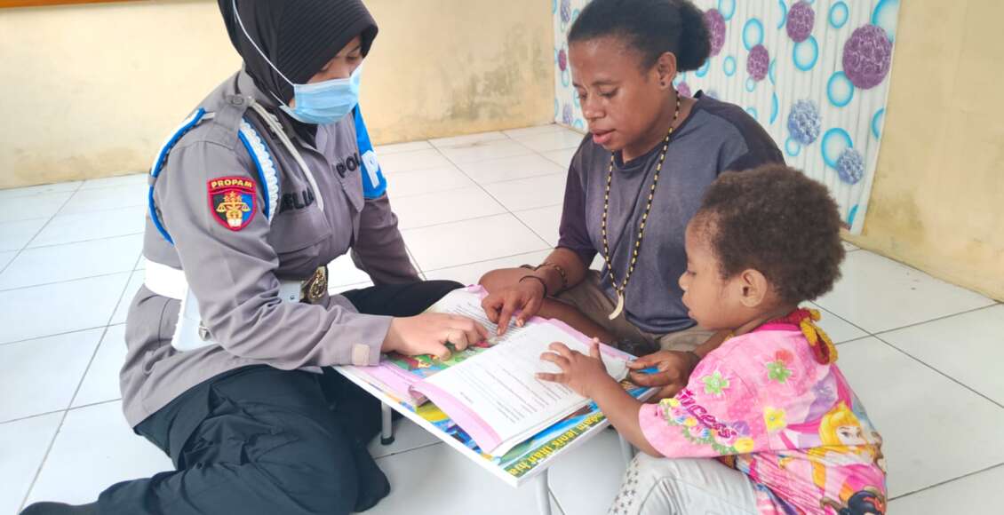 Regu 1 GABUS yang dipimpin AKP Katharina H.L Aya bersama rekan polwan lainnya, dengan konsistennya terus mengajarkan mama – mama dan anak – anak peserta didiknya agar bisa membaca dan menulis.