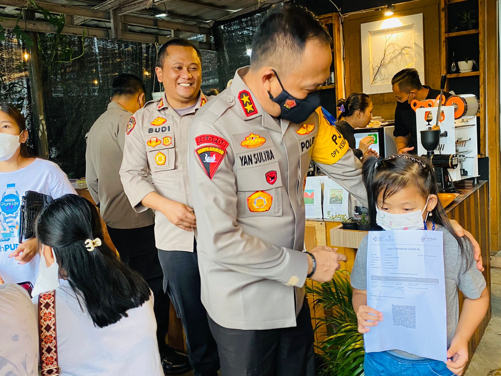 Diguyur Hujan, Kapolres Pangkalpinang Sapa Anak Anak di Warkop Temu Kopi