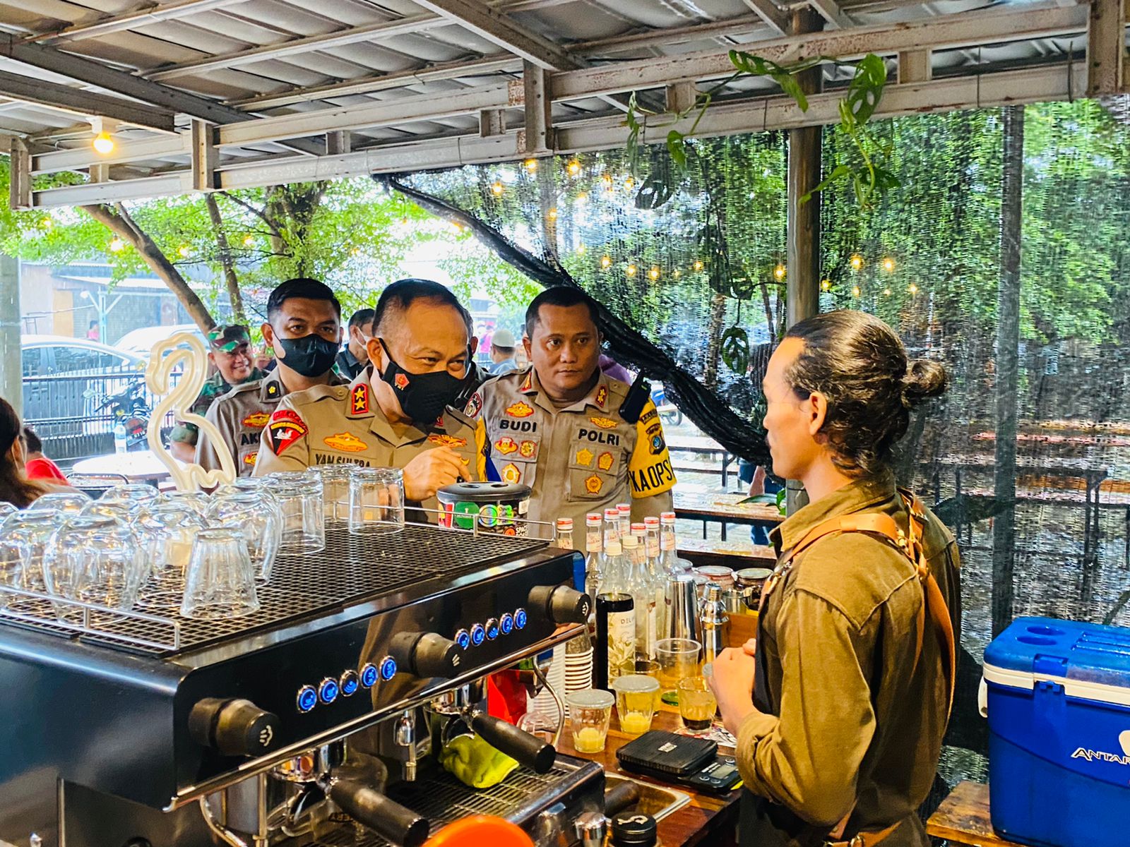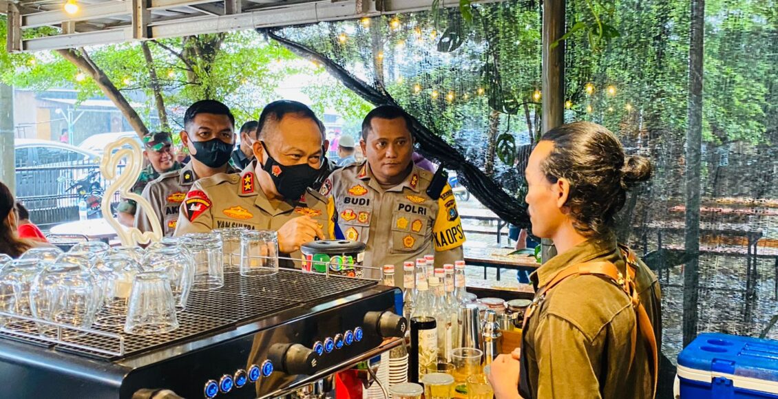 Diguyur Hujan, Kapolres Pangkalpinang Sapa Anak Anak di Warkop Temu Kopi
