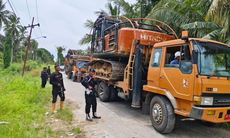 Dikawal Brimob Bersenjata Lengkap, Alat Berat Tambang Emas Ilegal Tapsel–Madina Dievakuasi ke Batalyon C Sipirok