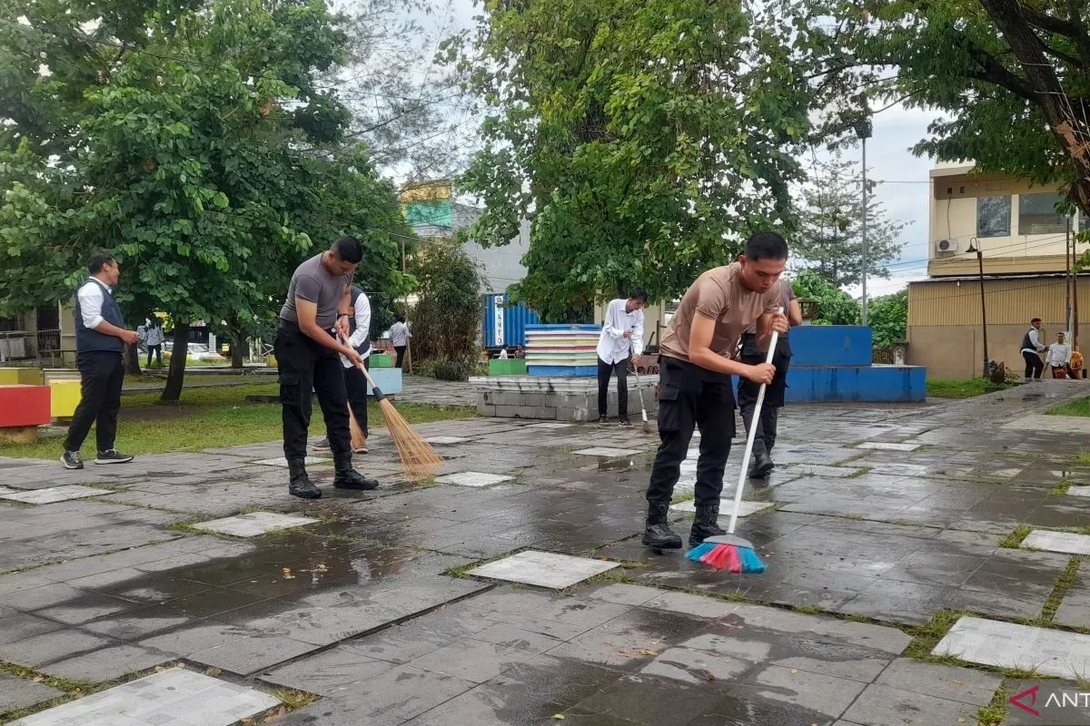 Direktur Reserse Kriminal Khusus Polda Gorontalo melaksanakan program bersih-bersih Gerakan Asri