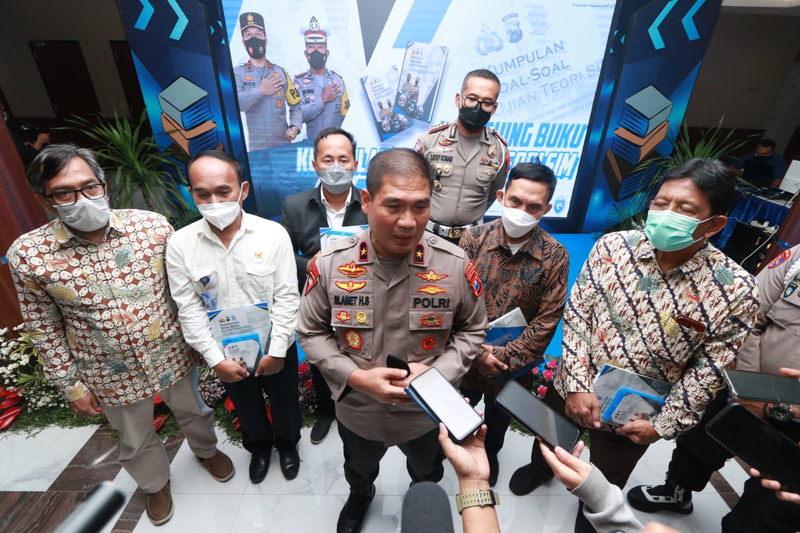 Sementara itu Waka Polda Jawa Timur Brigjen Pol Slamet Hadi Supraptoyo, mengatakan, bahwa Launching Buku Kumpulan Soal Ujian Teori SIM. Hari ini didampingi dari Universitas di Jatim yang tentunya sebagai mitra polisi didalam mensosialisasikan dan membantu bagaimana pendidikan lalu lintas masuk kurikulum.