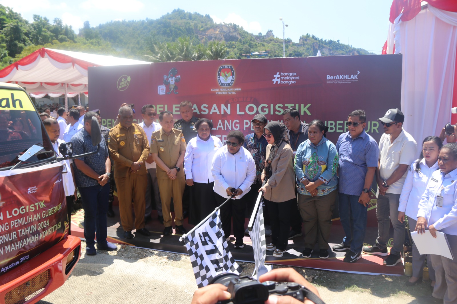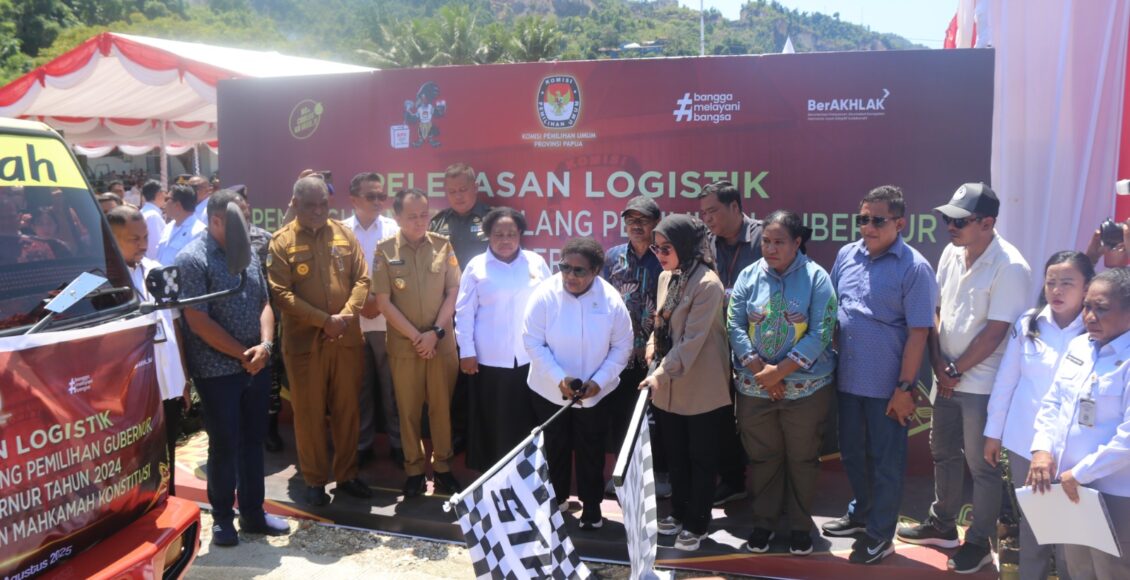 Hadir dalam pelepasan logistik ini, Wakil Menteri Dalam Negeri Dr. Ribka Haluk, S.Sos., MM., Anggota KPU RI Iffa Rosita, SE., MM., Pj. Gubernur Papua Dr. Agus Fatoni, serta sejumlah pejabat Forkopimda Papua dan Kota Jayapura, termasuk Kapolresta Jayapura Kota Kombes Pol Fredrickus W.A. Maclarimboen, S.I.K., M.H., CPHR. Kegiatan ini dipimpin langsung oleh Ketua KPU Provinsi Papua, Diana Dorthea Simbiak, S.Sos.