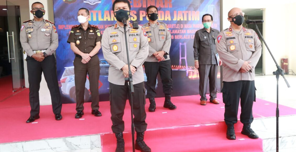 Kapolda Jatim Irjen Nico Afinta, menjelaskan, webinar ini dilaksanakan oleh jajaran Ditlantas Polda Jatim yang diikuti oleh Direktur Lalu Lintas seluruh Indonesia. Serta diikuti oleh Stakeholder, dari Kejaksaan, Pengadilan serta Akademisi dan juga Kapolres.