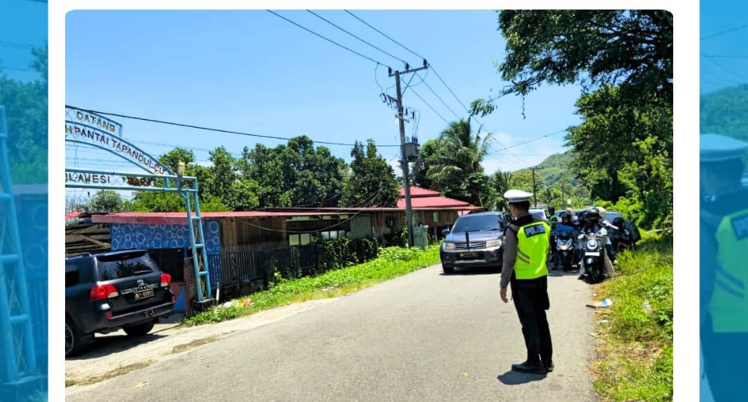 Salah satu destinasi yang menjadi fokus utama kegiatan pengamanan adalah Pantai Tapandullu Malawwa. Hari ini, Selasa (24/3/26) personel Ditlantas terlihat sangat proaktif mengatur arus kendaraan yang keluar masuk area wisata, mencegah kemacetan dan memastikan akses jalannya lancar.