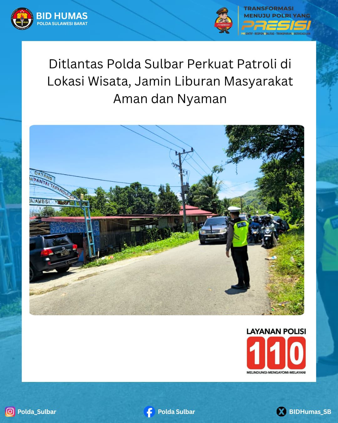 SULBAR,ikagawanews.id – Ditlantas Polda Silbar meningkatkan intensitas patroli dan pengaturan lalu lintas di berbagai lokasi wisata yang menjadi tujuan utama masyarakat selama masa libur panjang. Langkah ini dilakukan untuk memastikan keamanan dan kenyamanan setiap pengunjung yang menikmati waktu rekreasi.