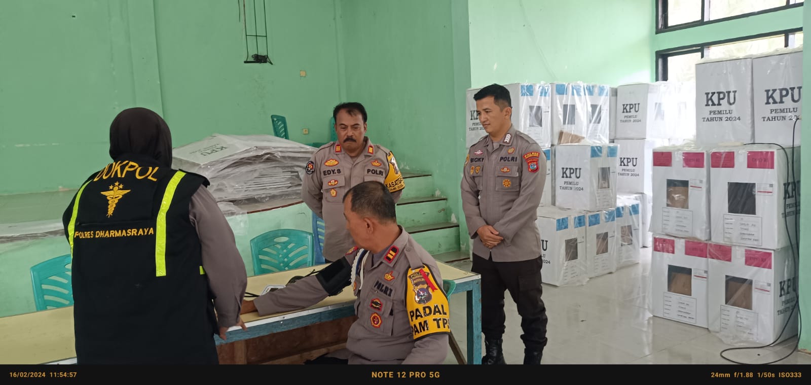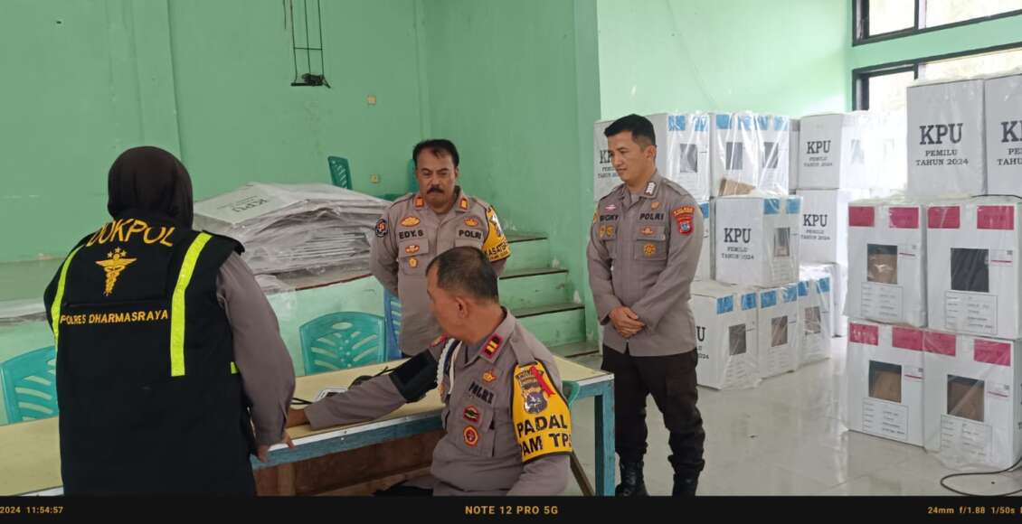 Dharmasraya, ikagawanews.id – Personel Seksi Dokter dan Kesehatan (Sidokkes) Polres Dharmasraya Polda Sumbar, yang tergabung dalam Satuan Tugas Operasi Mantap Brata 2024, memberikan layanan kesehatan kepada petugas, Kelompok Penyelenggara Pemungutan Suara (KPPS), Panitia Pemungutan Suara (PPS), dan petugas Pengaman Tempat Pemungutan Suara (TPS) dalam pelaksanaan pemilu 2024 di wilayah Hukum Polres Dharmasraya pada jumat, 16/2/2024.