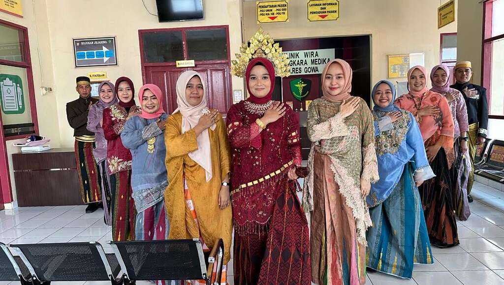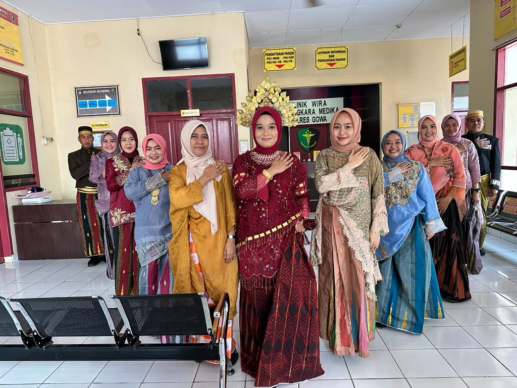 Dokter dan Tenaga Kesehatan Klinik Wira Bhayangkara Medika Polres Gowa Kenakan Baju Adat, Ada Apa?