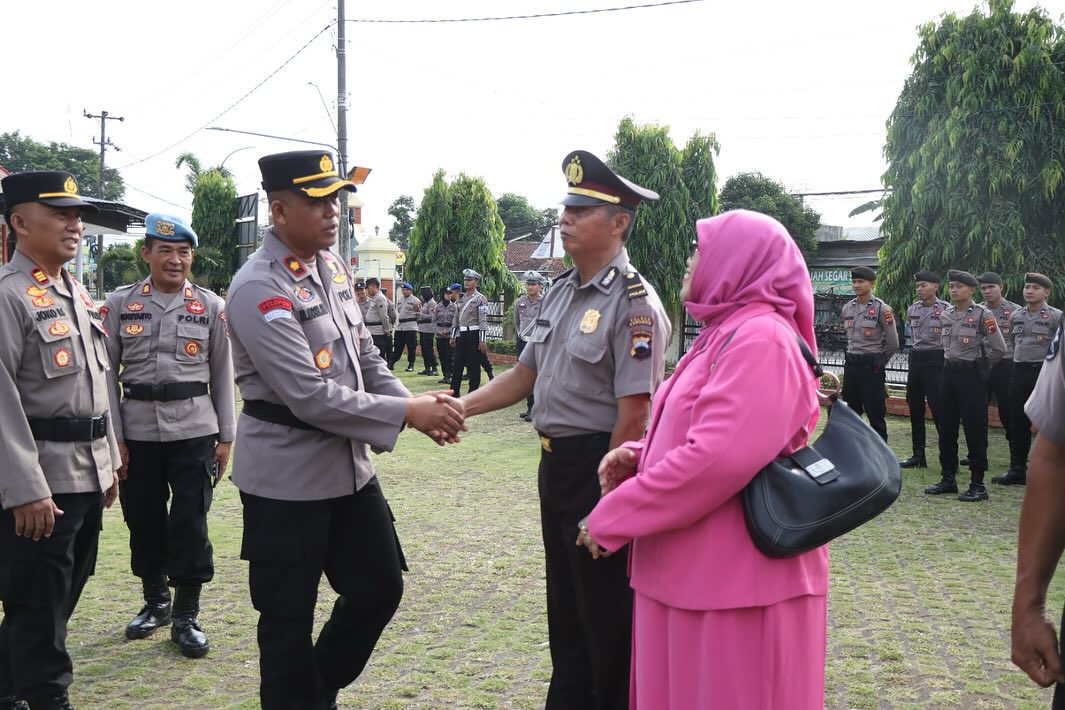Upacara kenaikan pangkat dilakukan di halaman Mapolres Kebumen dipimpin Wakapolres Kompol Muhammad Nurkholis dan diikuti personel Polres dan Polsek jajaran, Kamis 2 Mei 2024.