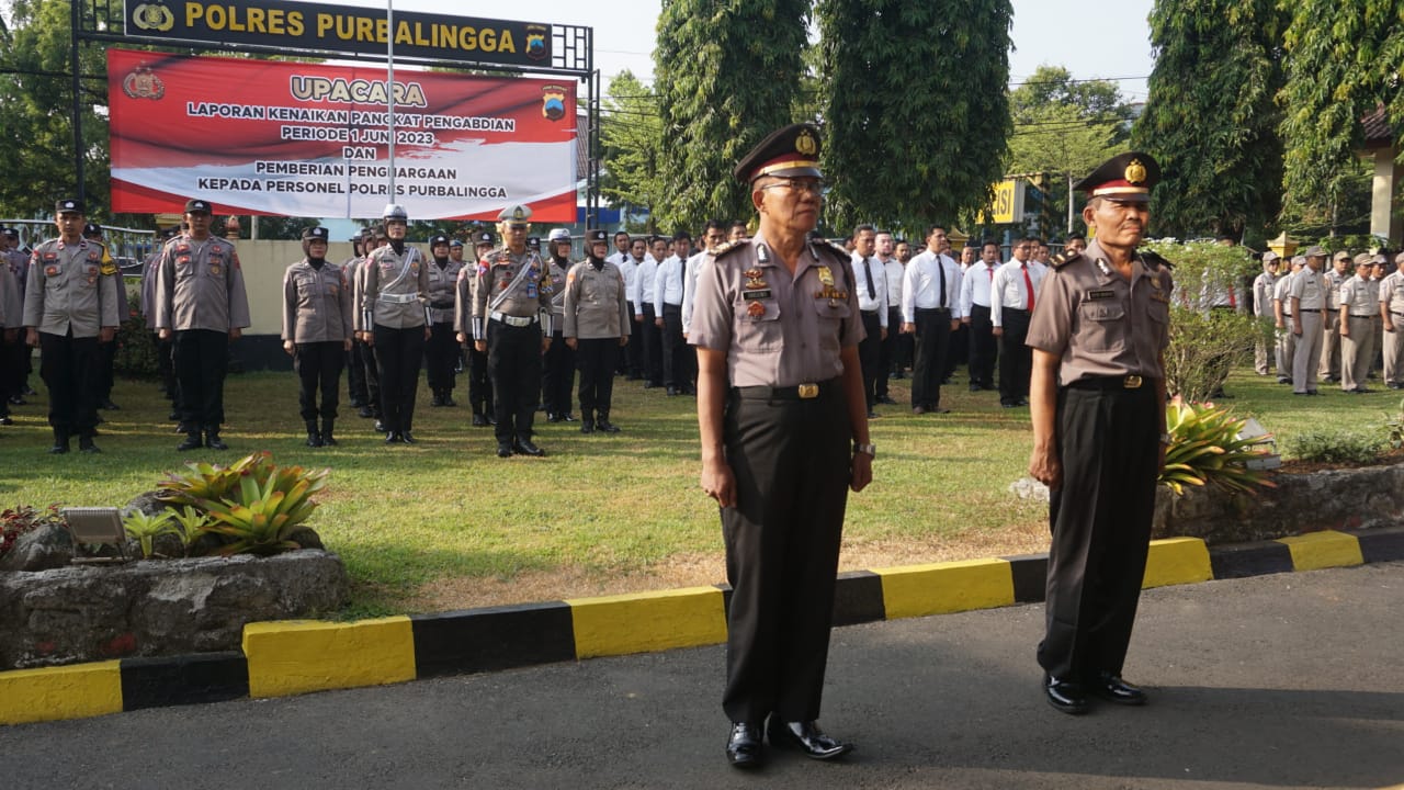Kapolres Purbalingga AKBP Hendra Irawan dalam amanatnya menyampaikan kenaikan pangkat pengabdian merupakan suatu penghargaan yang diberikan institusi kepada personel yang telah melaksanakan tugas dan pengabdian sebagai anggota Polri.