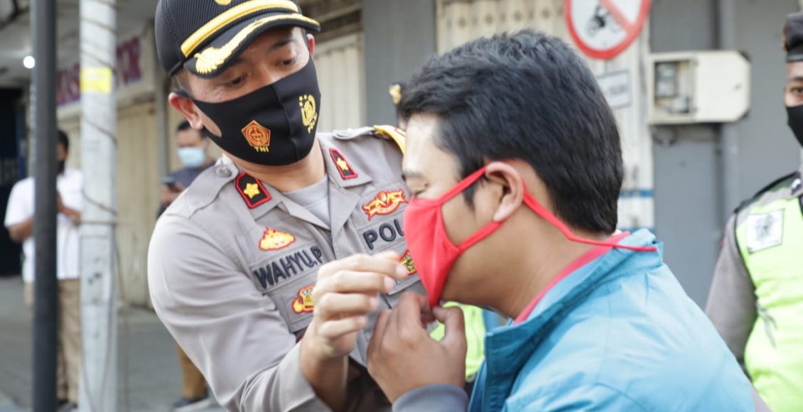 Jombang,IKAGAWANEWS.ID – Dalam rangka gerakan “Jatim Bermasker”, Polres Jombang melaksanakan kegiatan bagi-bagi Masker, di kebon rojo dan ringin contong kab. Jombang.