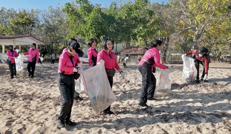 Dukung Gerakan Melawan Polusi Plastik, Kapolres Belu bersama Ketua Bhayangkari Pimpin Aksi Bersih Sampah di Tempat Wisata