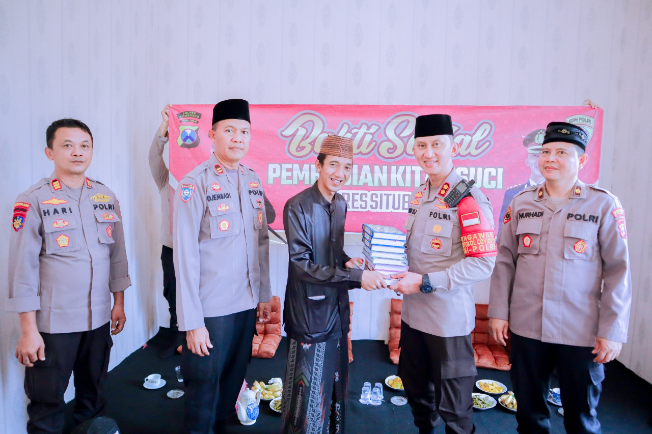 Mendukung program tersebut, Kapolres Situbondo AKBP Dr. Andi Sinjaya, S.H., S.I.K., M.H. bersilaturahmi ke Pondok Pesantren yang ada di kabupaten Situbondo sekaligus melaksanakan bakti sosial pembagian kitab suci Al-Qur’an kepada para santri dan santriwati. Penyaluran 10.000 Kitab Suci adalah program Kapolda Jatim sebagai wujud kepedulian dan perhatian Kepolisian kepada seluruh umat beragama.