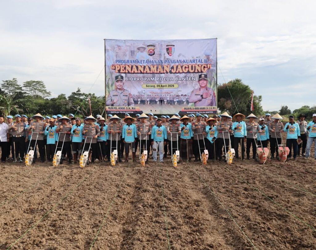 BANTEN,ikagawanews.id – Polda Banten melalui Bidpropam kembali menunjukkan komitmennya dalam mendukung program ketahanan pangan nasional dengan melaksanakan kegiatan penanaman jagung kuartal II di Link. Jelalang, Kelurahan Pengampelan, Kecamatan Walantaka, Kota Serang, Kamis, 9 April 2026.
