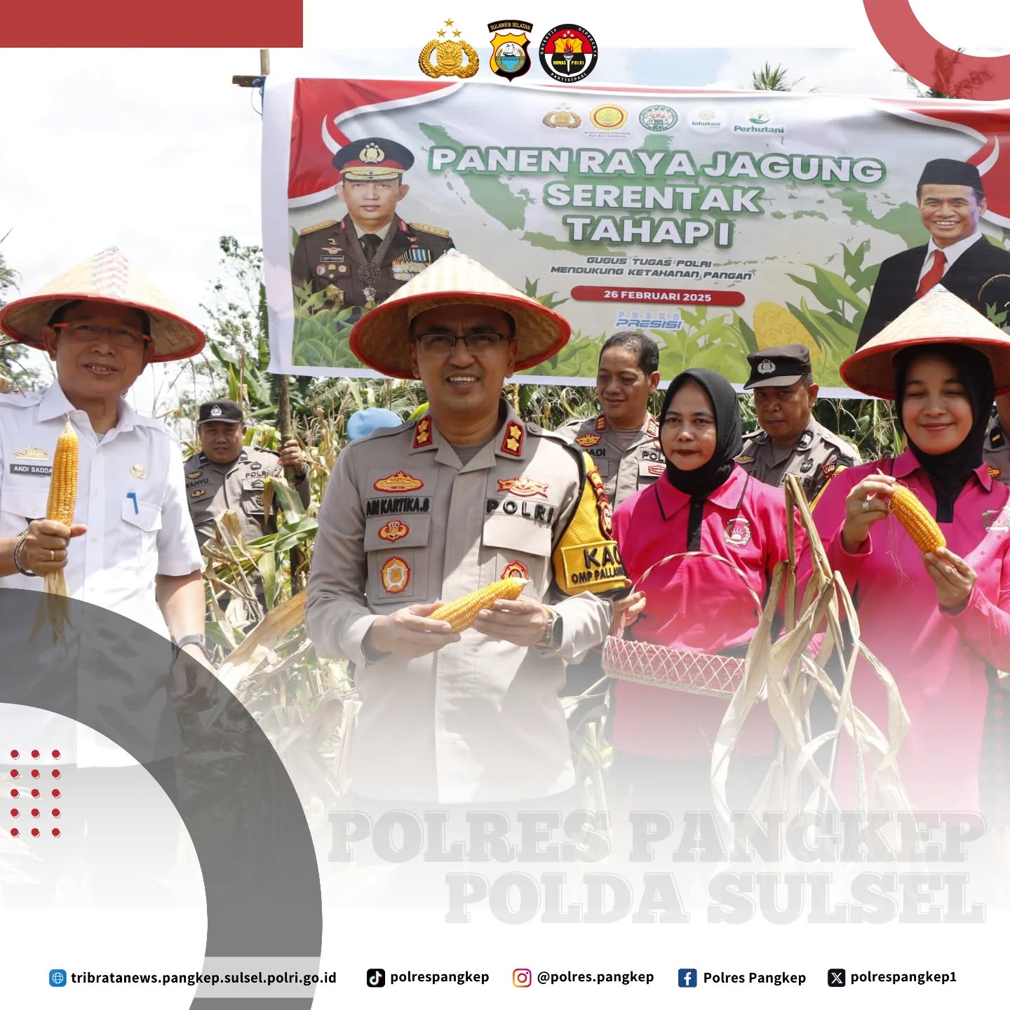 Dukung Program Swasembada Pangan Tahun 2025,Polres Pangkep Laksanakan Panen Raya Jagung Serentak Tahap I