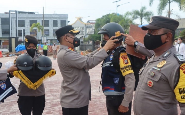 Dukung Semangat dan Kesiapan Tugas Anak Buah, Kapolres Dumai Bagikan Helm ‘Wak Bhabin’