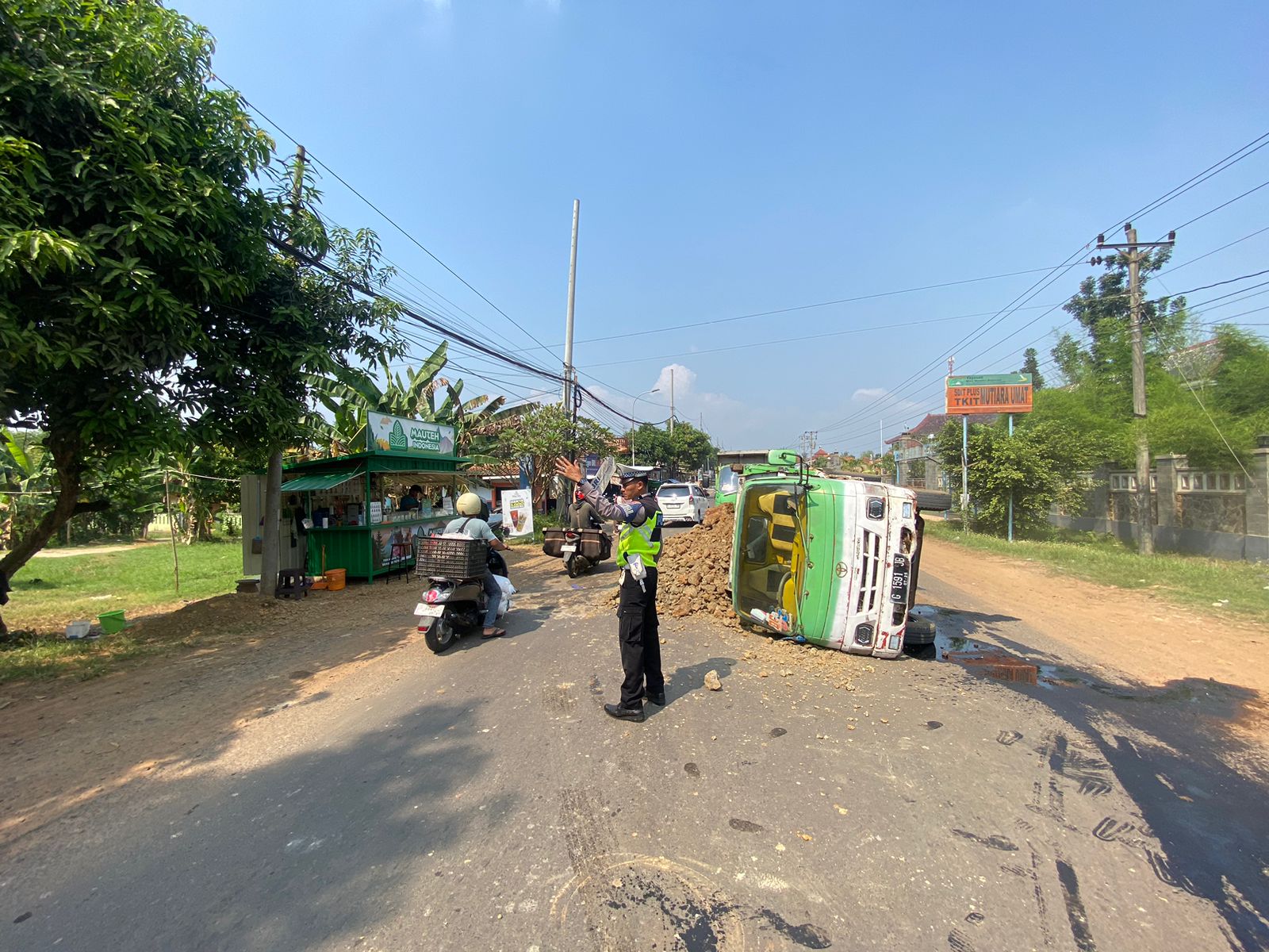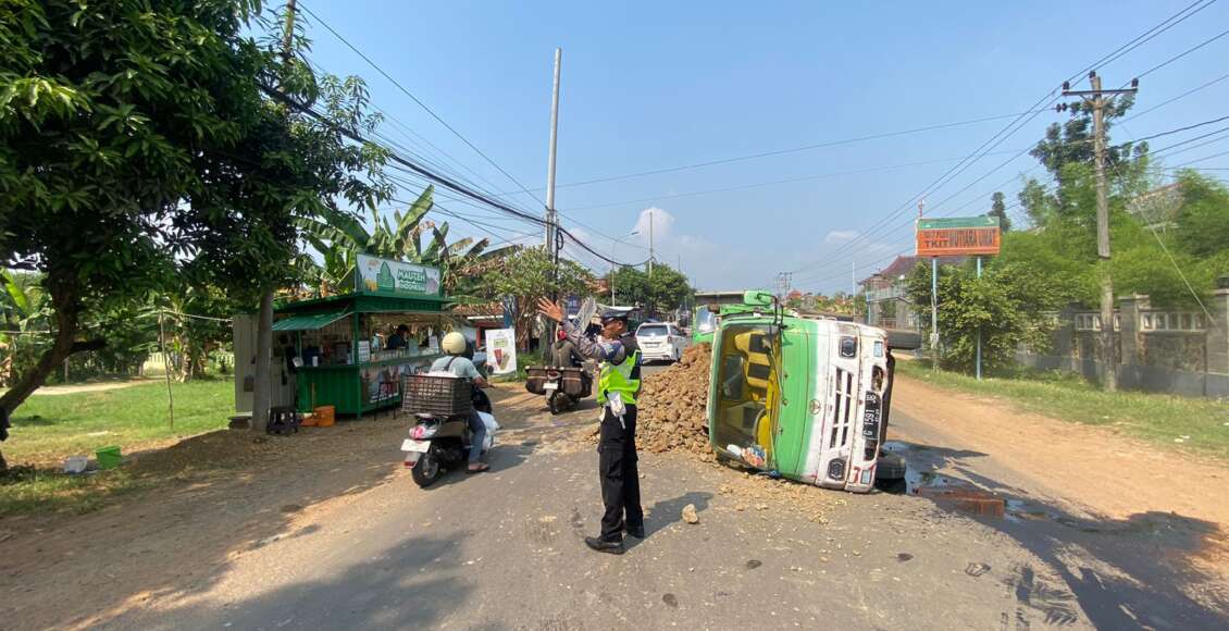“Sesampainya di TKP, tepatnya di depan SMA N1 Bojong, as roda kanan patah sehingga KBM truk terguling dan mengakibatkan muatan tanah tercecer di jalan,” jelas Kanit Gakkum.