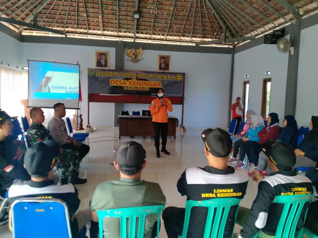 “Kegiatan ini dilangsungkan selama dua hari pada tanggal 19 dan 20 September 2023, diikuti oleh peserta sebanyak 52 orang. Mereka dari anggota Organisasi Pengurangan Risiko Bencana (OPRB) Desa Keningar, perangkat desa dan warga Desa Keningar. Dalam pelatihan ini petugas gabungan dari Polsek Dukun dan Koramil Dukun tidak hanya mendampingi tapi juga terlibat sebagai peserta dalam kegiatan pelatihan,” jelasnya.