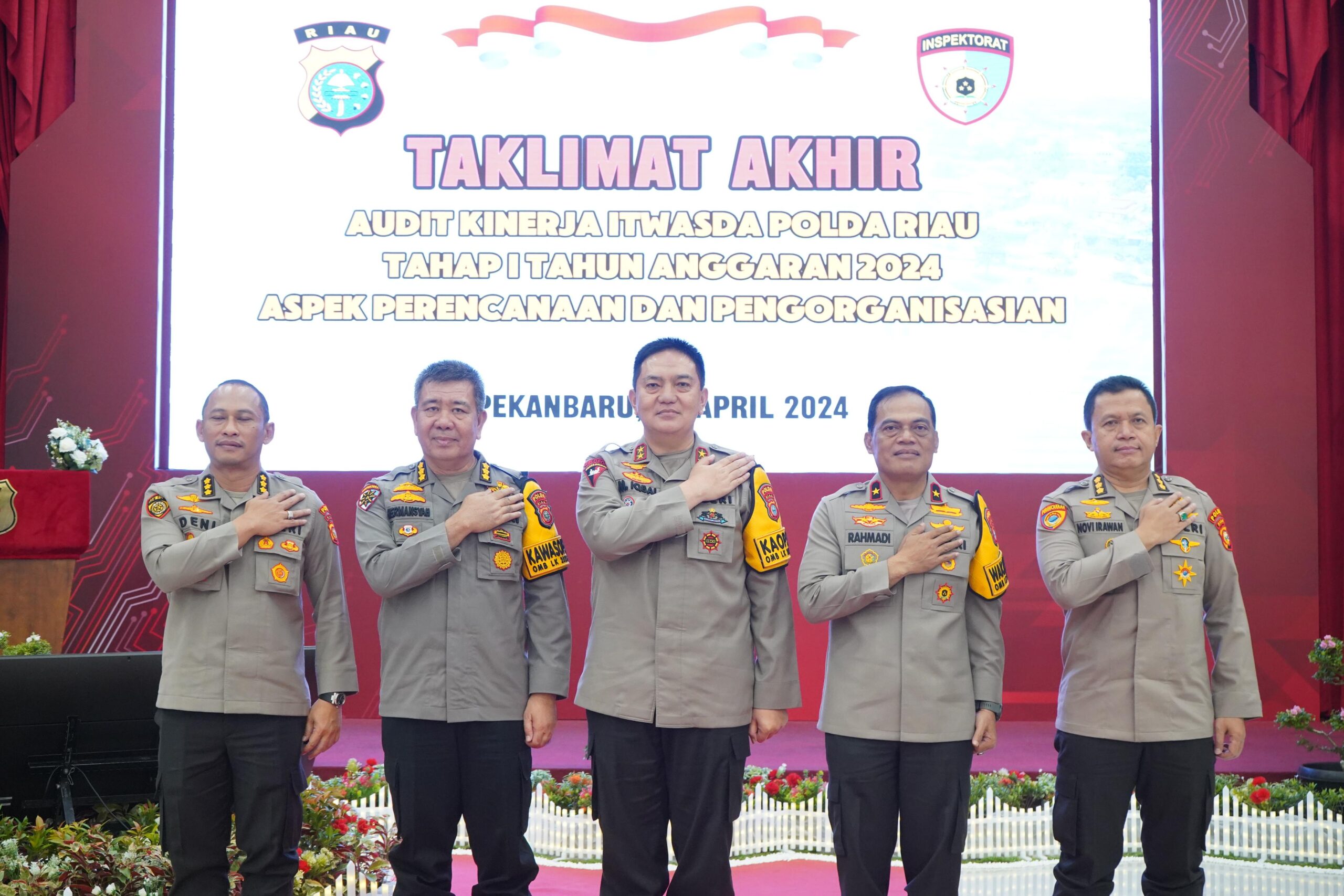 Pekanbaru, ikagawanews.id – Kapolda Riau Irjen M Iqbal mengikuti taklimat akhir audit kinerja Itwasda Polda Riau tahap I di Aula Tribrata Mapolda Riau, Selasa (23/4/2024). Audit ini dilaksanakan dari segi aspek perencanaan dan pengorganisasian tahun anggaran 2024.