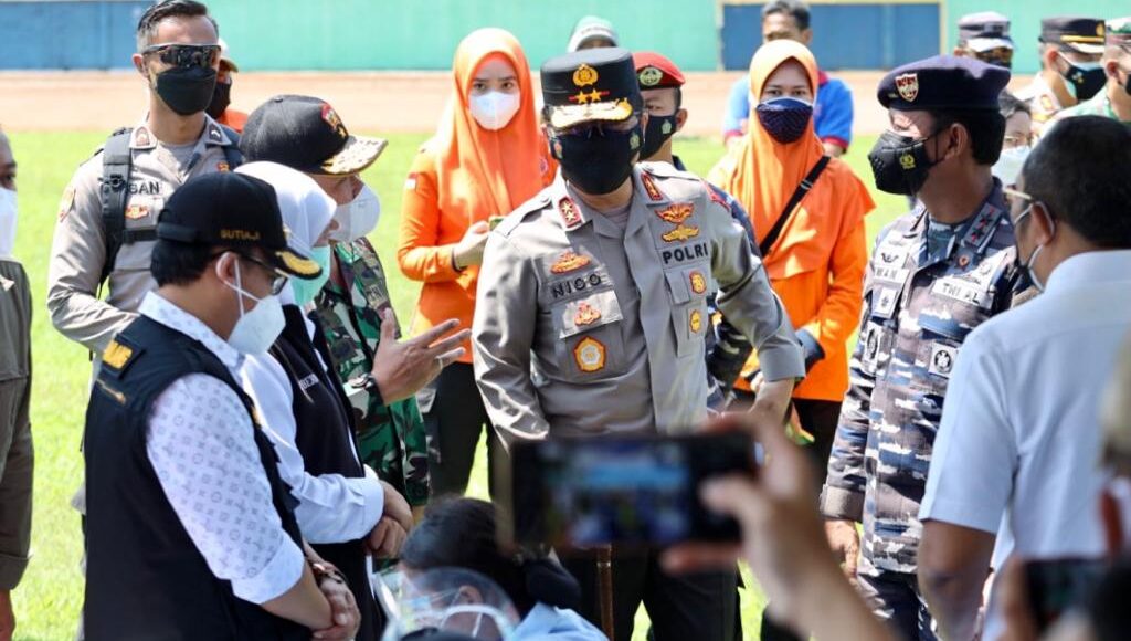 Malang, IKAGAWANEWS.ID  – Forkopimda Jawa Timur, Gubernur Jawa Timur Khofifah Indar Parawansa, Panglima Komando Armada II (Pangkormada II) Laksda TNI Iwan Isnurwanto, Kapolda Jatim Irjen Pol Nico Afinta, Kapoksahli Kodam V Brawijaya, Wakil Ketua DPRD Jatim, Sekda Prov, para Kapolres Malang Raya dan Forkopimda kota Malang melakukan pengecekan serbuan vaksinasi di Stadion Gajayana Malang, pada Sabtu (7/8/2021).