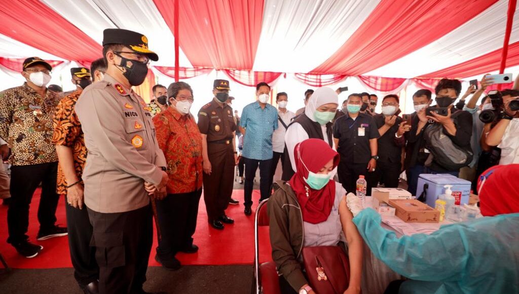 “Ayo segera sampaikan percepat vaksinasi dan bangun suasana yang kondusif tetap. Jaga protokol kesehatan,” imbuh Khofifah.