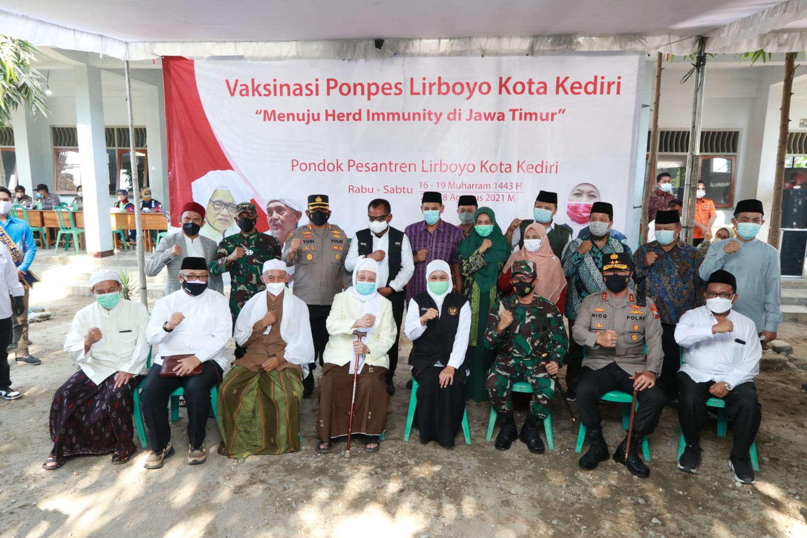Gubernur Jatim Khofifah Indar Parawansa, bersama Pangdam V Brawijaya Mayjend TNI Suharyanto, dan Kapolda Jatim Irjen Pol Nico Afinta, serta Pejabat Utama Polda Jatim dan Forkopimda Kota Kediri, mengecek pelaksanaan vaksinasi yang berlangsung di Ponpes Lirboyo Kediri.
