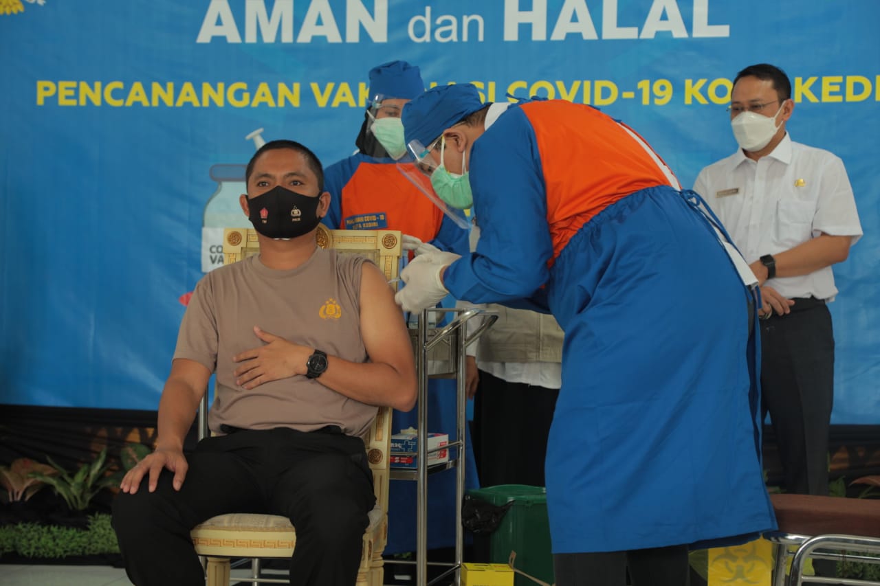 Dengan rangkaian kegiatan diawali registrasi, doa dan sambutan Walikota Kediri Sekaligus pencanangan vaksinasi Covid-19.