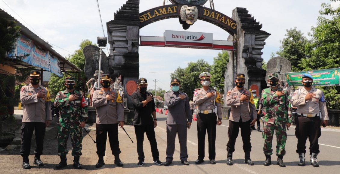 Petugas gabungan dari Polri, TNI, Satpol PP, Dishub, Banser dan tenaga kesehatan melakukan pemeriksaan terhadap semua pelintas batas terutama yang mengendarai mobil dari luar Ponorogo.
