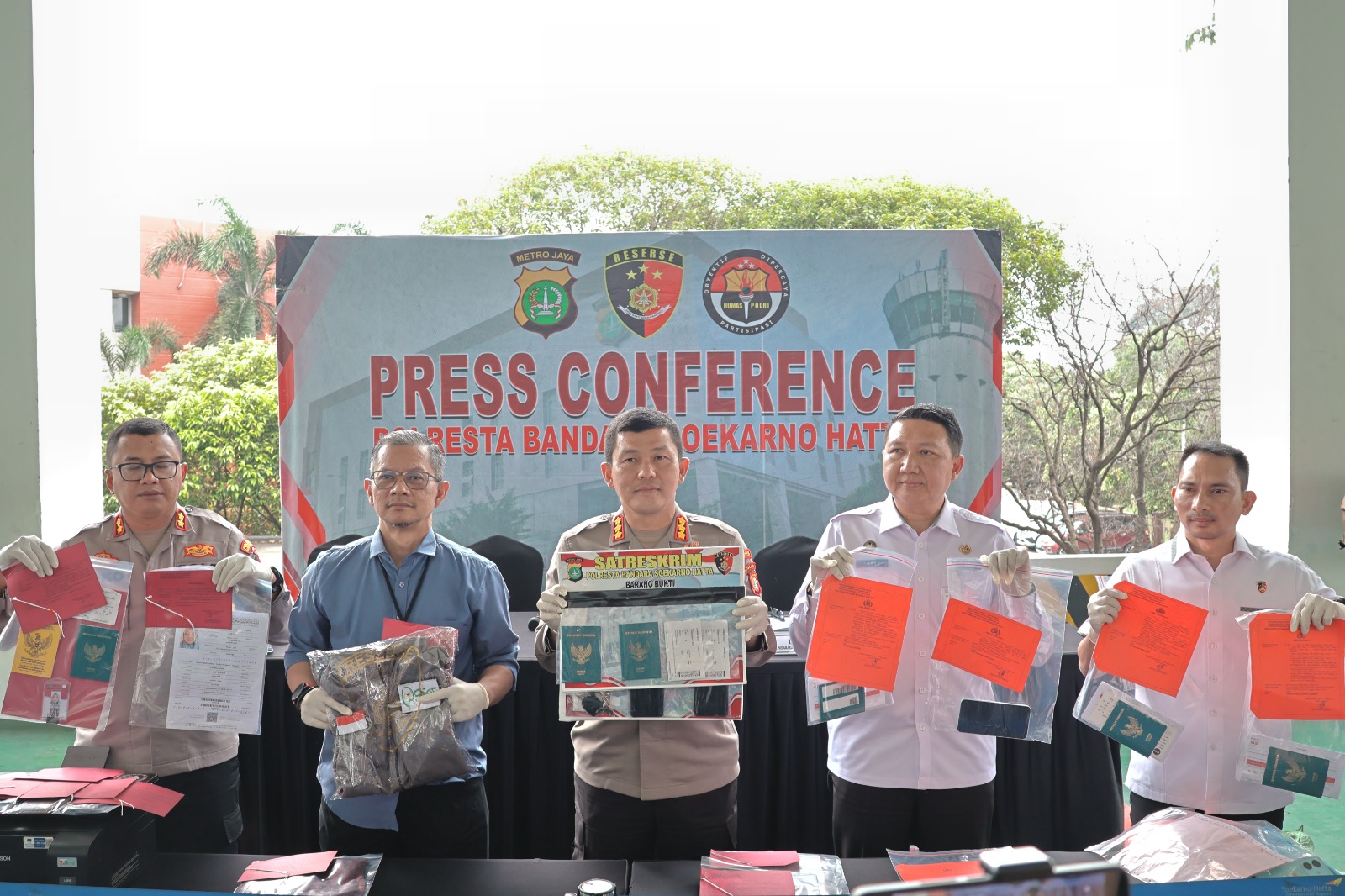 Ronald menambahkan, selain menangkap para tersangka pihaknya juga berhasil mengamankan berbagai barang bukti seperti paspor, boarding pass pesawat, visa, dokumen izin cuti, Kartu Siskopatuh bertuliskan Kementerian Agama dan lain-lain.