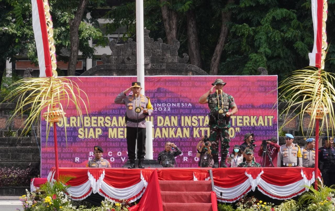 BALI,ikagawanews.id  – Kapolri Jenderal Listyo Sigit Prabowo bersama Panglima TNI Jenderal Andika Perkasa memimpin apel gelar pasukan Operasi Puri Agung 2022 dalam rangka pengamanan puncak forum Konferensi Tingkat Tinggi (KTT) G20 di Bali pada 15-16 November mendatang.