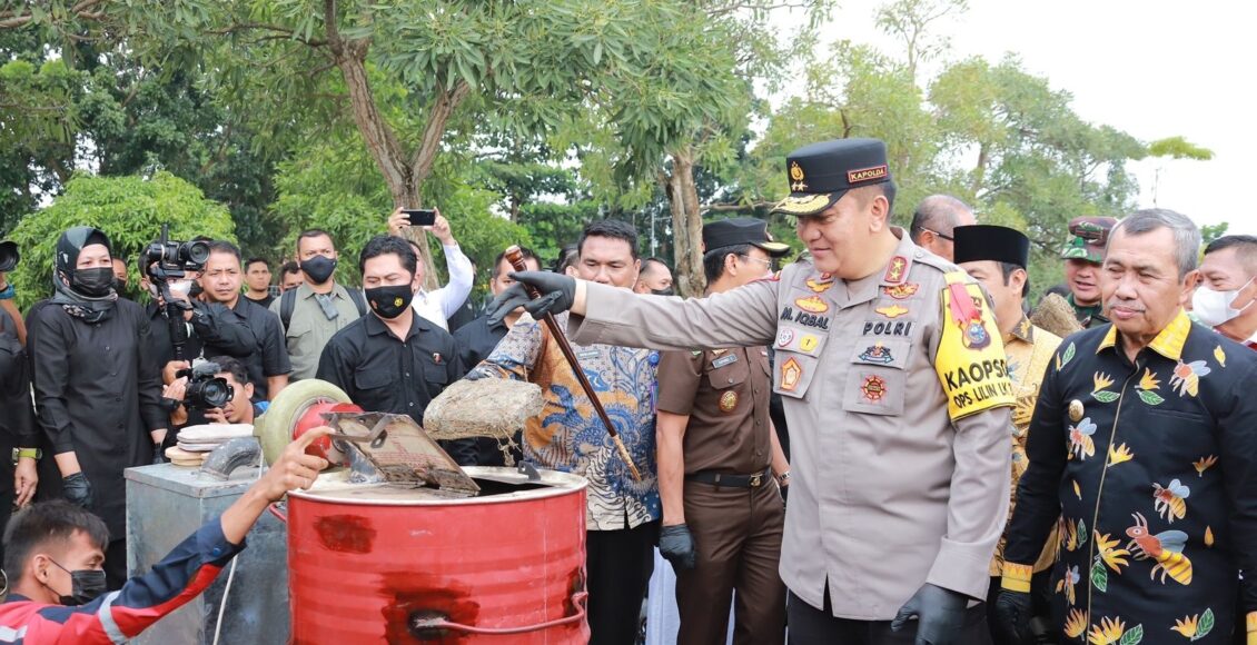 PEKANBARU,ikagawanews.id – Jajaran Kepolisian Daerah (Polda) Riau, memusnahkan barang bukti hasil sitaan saat menggelar Operasi Penyakit Masyarakat (Pekat) Lancang Kuning 2022 dan Cipta Kondisi (Cipkon), beberapa waktu lalu.
