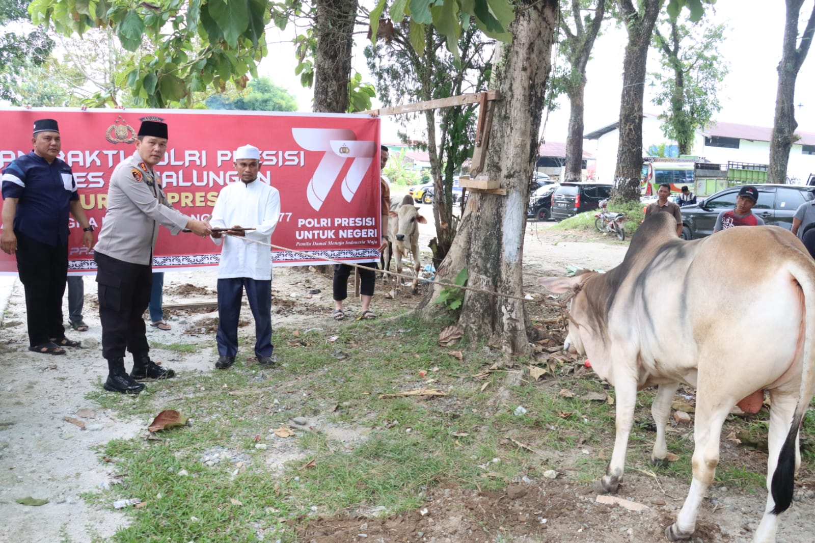 SIMALUNGUN ,ikagawanews.id – Kapolres Simalungun, AKBP Ronald F.C Sipayung, S.H., S.I.K., M.H., memimpin pelaksanaan Qurban Presisi dalam momentum peringatan Hari Raya Idul Adha 1444H/2023M. Pelaksanaan Qurban Presisi ini merupakan bentuk Implementasi Bulan Bakti Presisi dengan pelaksanaan Pemotongan Hewan Qurban oleh Ustad H. Zainal Abidin, LC., menjelang Hari Bhayangkara ke-77,Kamis, 29 Juni 2023.