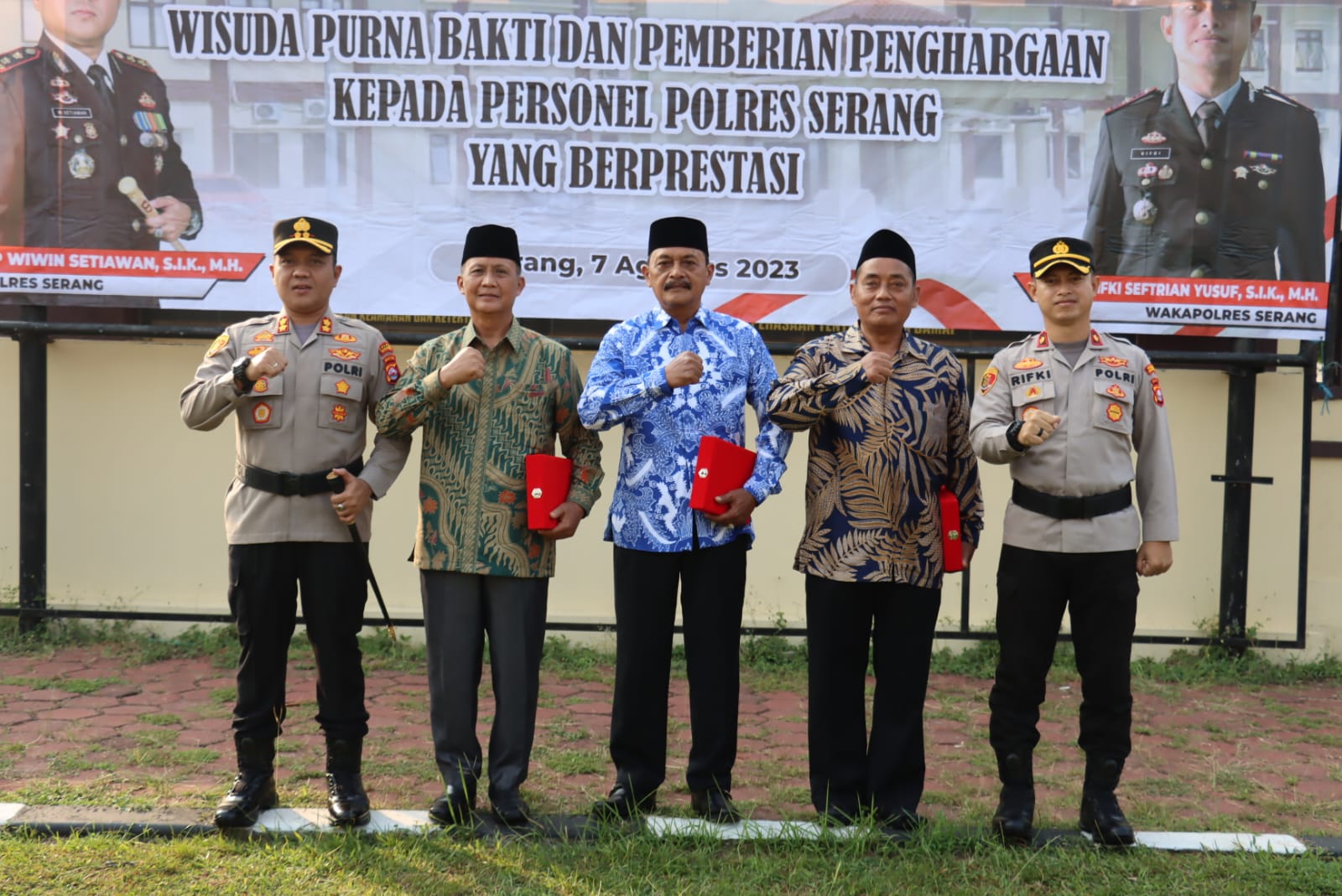 Personil Polri yang Purna Tugas diantaranya Kompol (Purn) H. Joko Pituturno, S.H., dengan jabatan terakhir Kabag Ops Polres Serang, AKP (Purn) Tata Sutara jabatan terakhir Pama Polres Serang dan AKP (Purn) Wawan Purwadi.