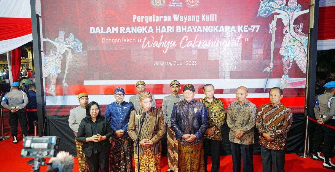 JAKARTA,ikagawanews.id – Kapolri Jenderal Listyo Sigit Prabowo menghadiri pagelaran Wayang Kulit dengan lakon Wahyu Cakraningrat di Lapangan Bhayangkara, Jakarta Selatan, Jumat, 7 Juli 2023, malam.