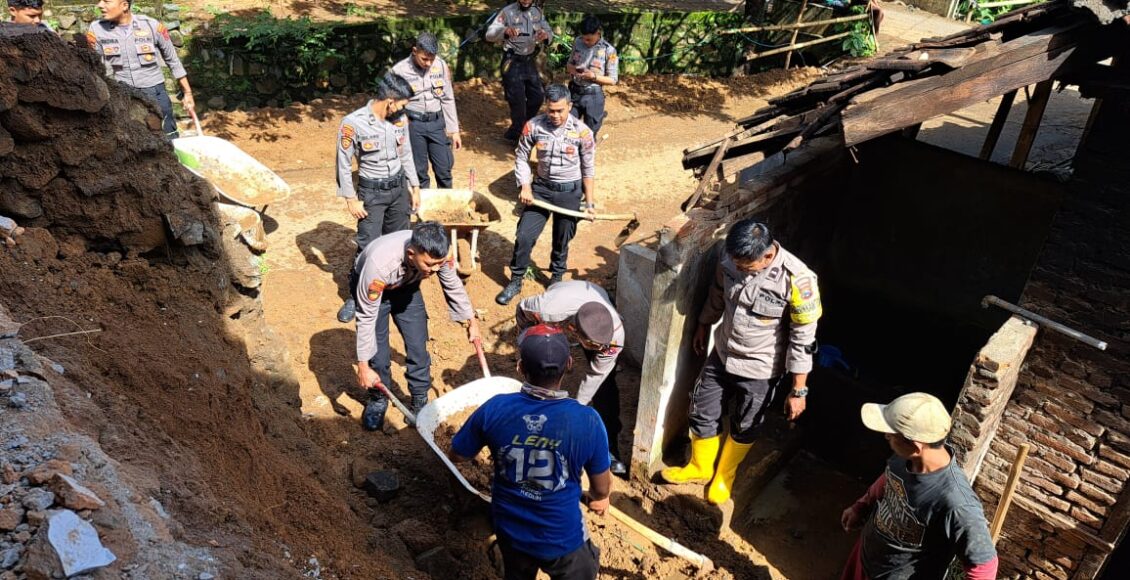Gerak Cepat, Polres Kediri Kota Bersihkan Material Longsor di Desa Kanyoran Semen