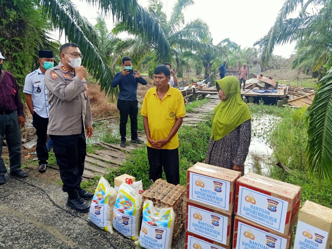 Gerak Cepat,Kapolres Rohil Salurkan Bantuan Kepada Masyarakat Yang Terdampak Bencana Angin Puting Beliung
