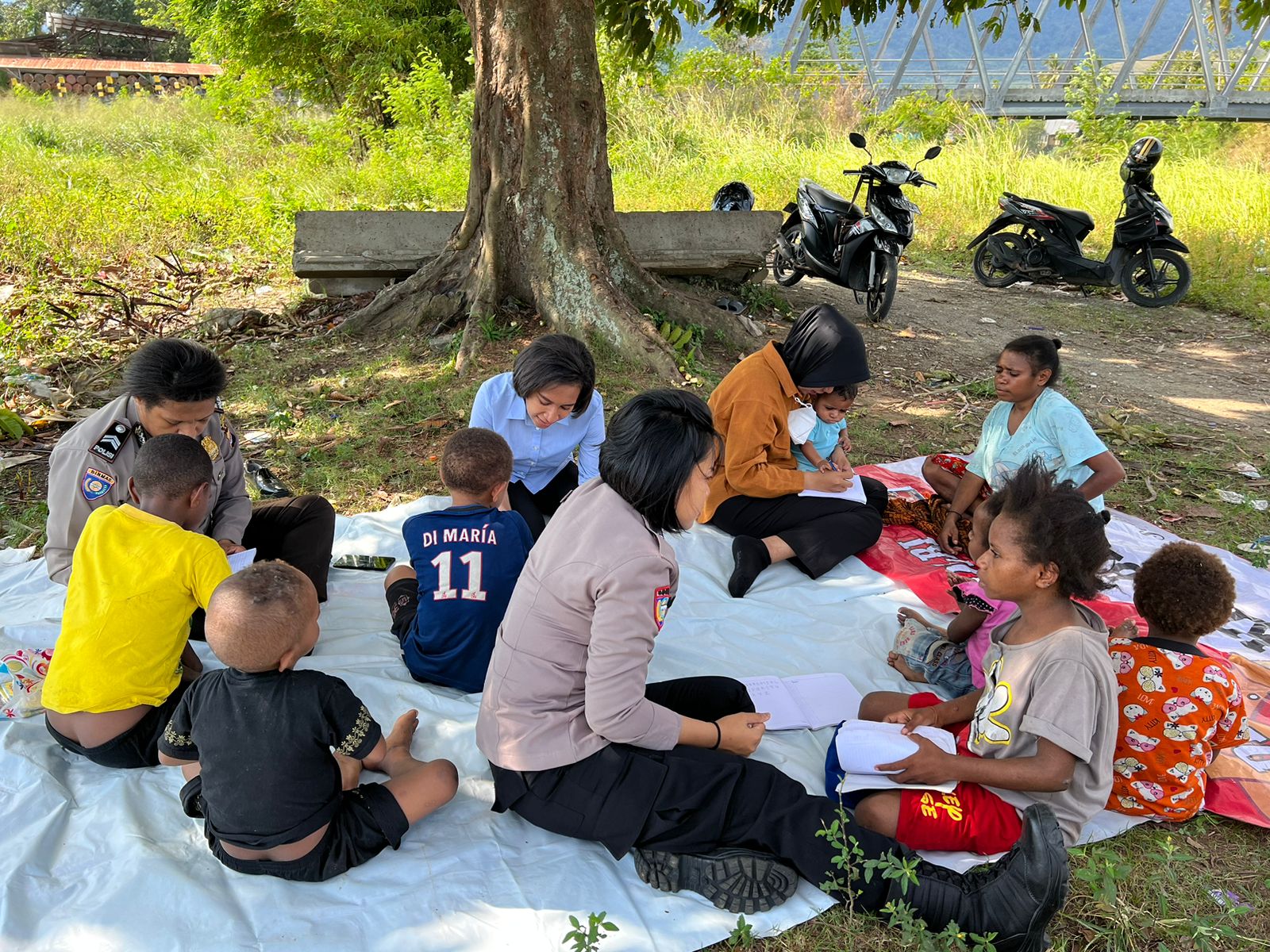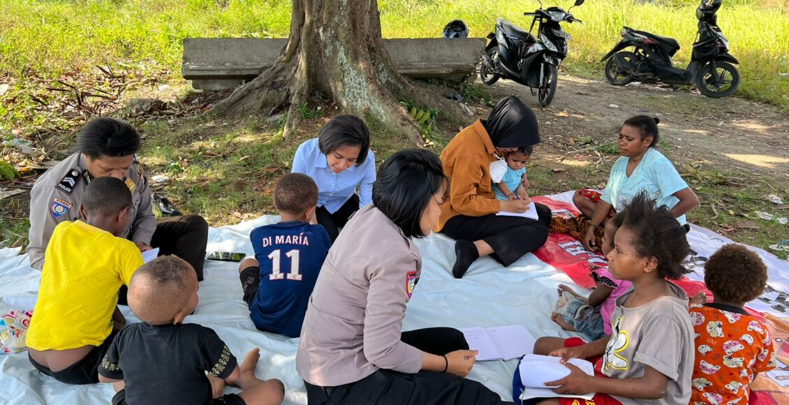 Dari anak – anak hingga mama – mama terus diajarkan membaca dan menulis, berlangsung 3 kali dalam seminggu Polwan Polres Jayapura AKP Katharina H.L Aya bersama anggotanya kembali mendatangi peserta didik yang berada di Kompleks Oksibil Jalan Yabaso Sentani Kab. Jayapura.