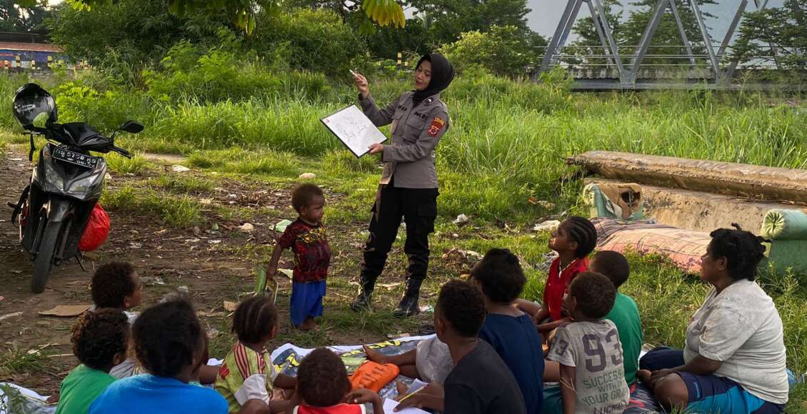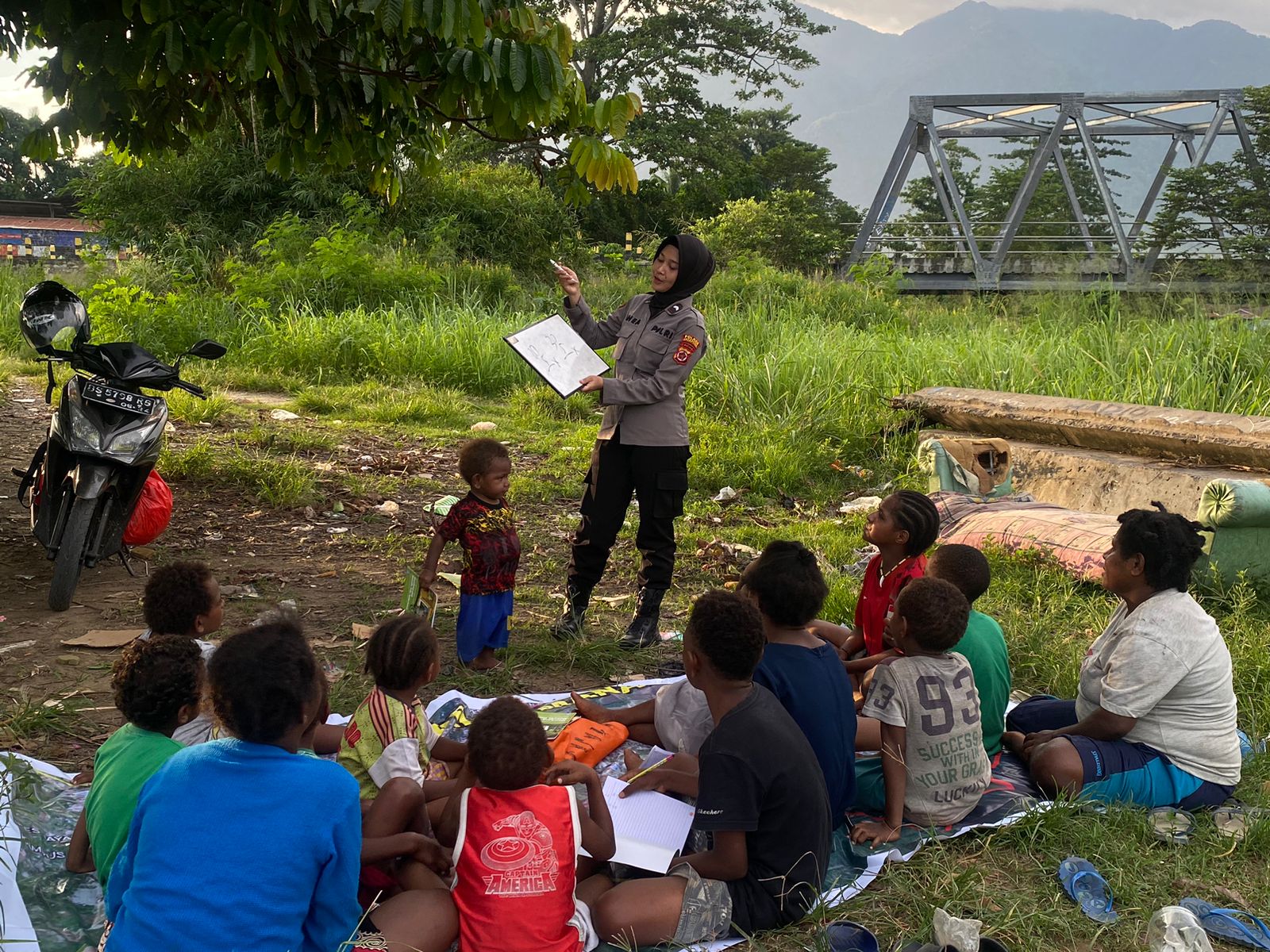Para Polwan Polres Jayapura mengajar baca tulis kepada masyarakat Kabupaten Jayapura selepas pulang dari kegiatan rutin di kantor, hal tersebut sebagai wujud kepedulian Polri khususnya Polres Jayapura dalam bidang pendidikan.
