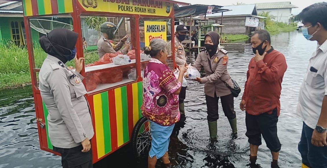Lanjut Kapolres Rohil mengatakan, kegiatan baksos pembagian nasi kotak kali ini ditujukan bagi warga / masyarakat yang rumahnya terendam air akibat derasnya curah hujan belakangan ini.