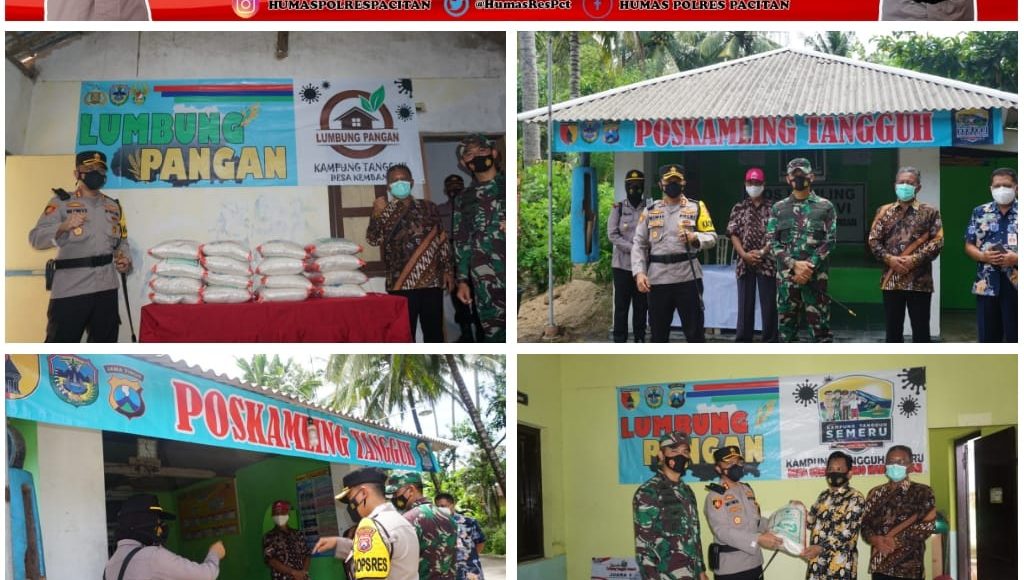 Diteruskan, penyampaian AKBP Wiwit Ari Wibisono, SH, S.I.K, M.H (Kapolres Pacitan) intinya menuturkan, Kampung tangguh seperti pada hari ini kita upayakan untuk menengok satu persatu kampung dan memberikan bantuan berupa bibit ikan dan berupa beras dimaksudkan untuk kampung tangguh tahun ini bisa mengisolasikan pasien atau mengisolasikan orang yang ketika hasil tes swab atau kontak erat sambil menunggu hasilnya.