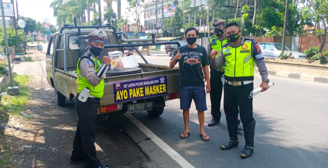 Hal ini, sesuai Inpres No. 6 tahun 2020 serta pembagian masker kepada pengguna jalan guna mencegah penyebaran Covid 19 di wilayah Hukum Polres Magelang Kota.
