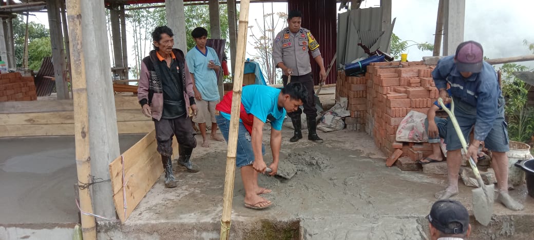 Terlihat, Aipda Ridwan Senin 03 Juni 2024 turun langsung membantu masyarakat bergotong royong melakukan pengecoran rumah warga di Lembang Pong Bembe Kec. Simbuang Kab. Tana Toraja.