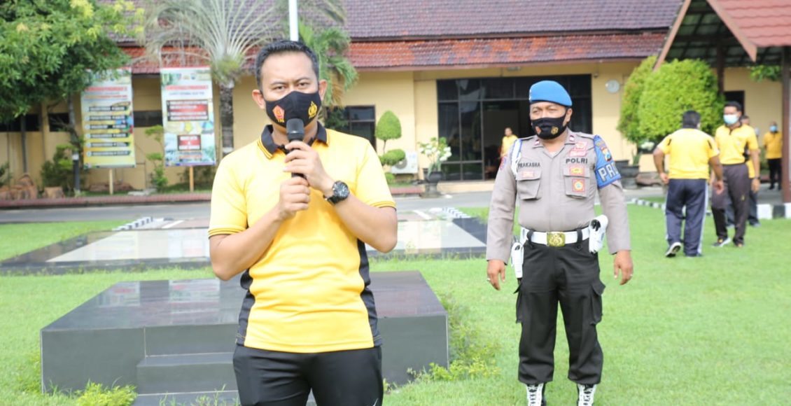 Kapolres Jombang melaksanakan kegiatan Olahraga rutin bersama seluruh anggota di Mako, pada hari Sabtu (04 Desember 2020), sekira pukul 07.00 Wib.